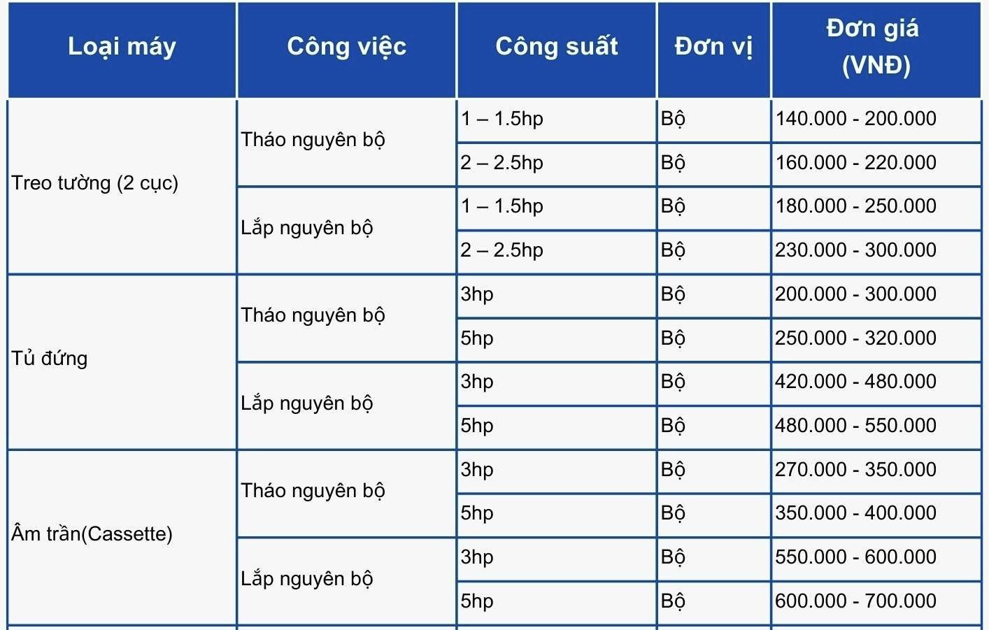 Bảng giá dịch vụ sửa máy lạnh Phường An Hội Đông tại Điện Lạnh MT được thiết kế minh bạch theo từng hạng mục, giúp khách hàng dự trù chi phí trước khi thợ đến xử lý. Mức giá được điều chỉnh phù hợp với tình trạng thực tế của máy và loại máy lạnh sử dụng tại gia đình hay cửa hàng.
