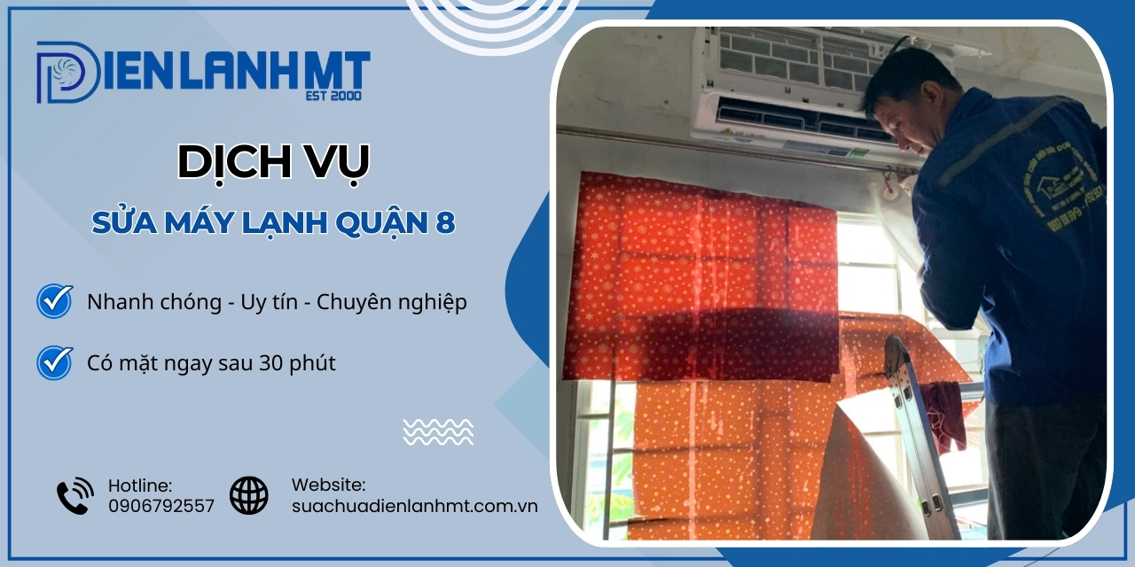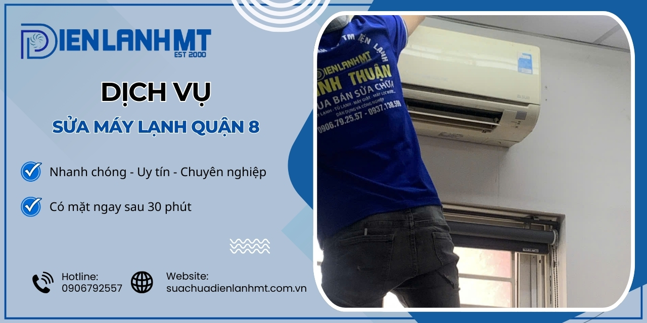 Dịch vụ sửa máy lạnh quận 8 nhanh chóng 24h Điện Lạnh MT là một trong những dịch vụ hàng đầu hiện nay, đáp ứng nhanh chóng mọi nhu cầu sửa chữa máy lạnh của người dân tại khu vực này. Với đội ngũ kỹ thuật viên chuyên nghiệp và kinh nghiệm, chúng tôi luôn sẵn sàng phục vụ và mang lại sự hài lòng tối đa cho khách hàng. Liên hệ để được tư vấn và báo giá!