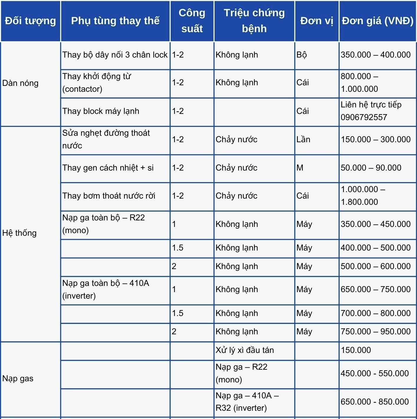 Bảng giá dịch vụ sửa máy lạnh Xã Hóc Môn tại Điện Lạnh MT được xây dựng minh bạch, phù hợp với nhiều nhu cầu sửa chữa và bảo trì máy lạnh dân dụng. Mức giá có thể thay đổi tùy theo tình trạng thiết bị, loại máy và mức độ hư hỏng thực tế sau khi kỹ thuật viên kiểm tra.